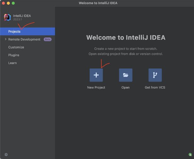 1. ์ธํ ๋ฆฌ์ ์ด ์คํ ํ, "New Project" ํด๋ฆญ