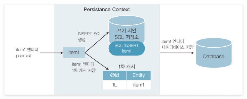 μμμ± μ»¨ν μ€νΈμλ μ°κΈ° μ§μ° SQL μ μ₯μκ° μ‘΄μ¬νλ€. entityManager.persist()λ₯Ό νΈμΆνλ©΄ 1μ°¨ μΊμμ μ μ₯λλ κ²κ³Ό λμμ μ°κΈ° μ§μ° SQL μ μ₯μμ SQLλ¬Έμ΄ μ μ₯λλ€. μ΄λ κ² SQLμ μμλκ³ νΈλμμ μ 컀λ°νλ μμ μ μ μ₯λ SQLλ¬Έλ€μ΄ flushλλ©΄μ λ°μ΄ν°λ² μ΄μ€μ λ°μλλ€. μ΄λ κ² λͺ¨μμ 보λ΄κΈ° λλ¬Έμ μ±λ₯μμλ μ΄μ μ λ³Ό μ μλ€.
