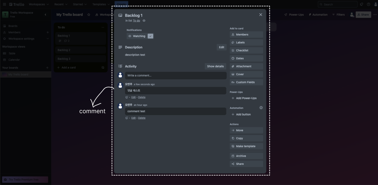 ํธ๋ ๋ก์ ๊ตฌ์กฐ๋ฅผ ๋ณด๋ฉด '๋ณด๋ > ์นผ๋ผ > ์นด๋ > ๋๊ธ' ์์ผ๋ก ๋์ด์๋ค.