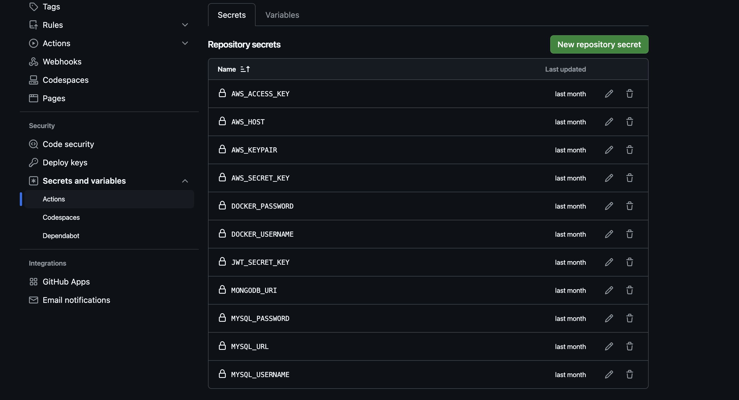 ๋ชฉ์ฐจ 0. ํฌ์คํ ๊ณ๊ธฐ 1. CI/CD ๊ฐ๋ 2. OverView : Github Action + Docker + Nginx + AWS EC2 3. ์คํ๋ง ํ๋ก์ ํธ ๋ด๋ถ์ .yml ํ์ผ ์์ฑ 4. ์คํ๋ง ํ๋ก์ ํธ ๋ด๋ถ์ Dokerfile ์์ฑ 5. Github Actions์ Secrets ๊ฐ ์ค์ 6. Github