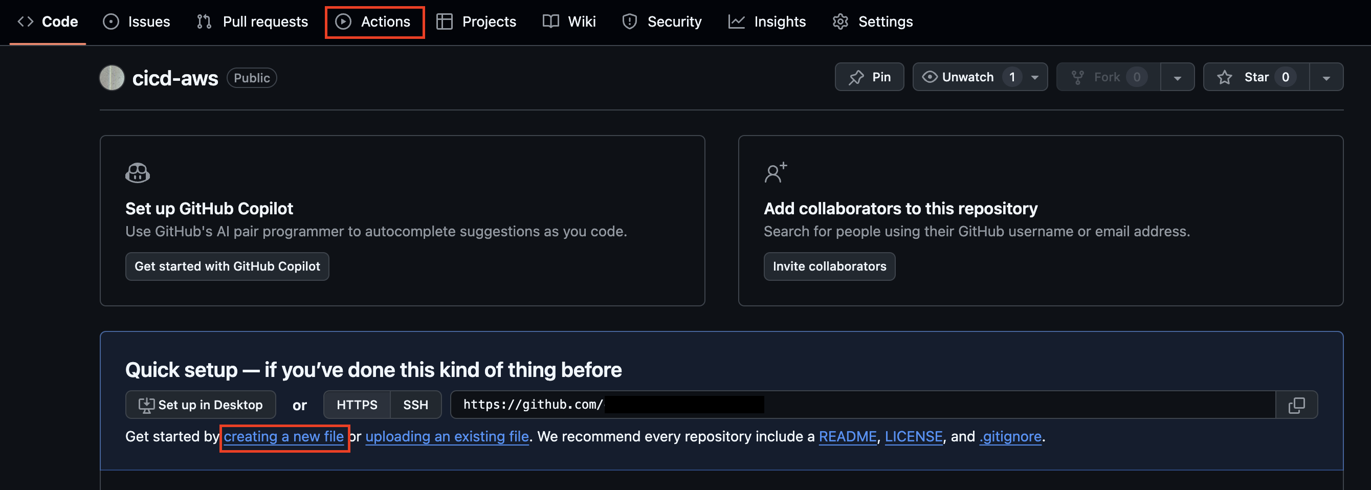 ๊นํ๋ธ ๋ ํฌ์งํ ๋ฆฌ๋ฅผ ์์ฑํ๋ฉด ๋์ค๋ ํ์ด์ง์์ Actions ํญ์ ์ ํํ๊ฑฐ๋ creating new file์ ์ ํ ํ ๋ค์ ๋จ๊ณ๋ก ๋์ด๊ฐ์ค๋ค. Actions ํญ์ ์ ํํ๋ฉด ํ ํ๋ฆฟ์ ๊ฒ์ํ๊ณ ์ ํํ ์ ์๋ ํ์ด์ง๋ก ๋์ด๊ฐ๊ณ , creating new file์ ์ ํํ๋ฉด ๋ฐ๋ก ymlํ์ผ ํธ์ง ํ์ด์ง๋ก ๋์ด๊ฐ ์ ์๋ค.